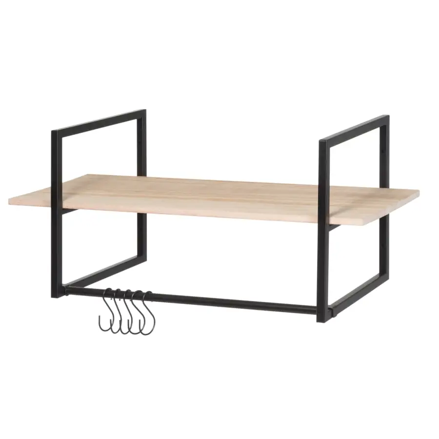 Durable and practical metal wall rack with wooden shelf and hanging rod. Suitable for a wide range of uses and spaces, such as home office, hallway, kitchen, etc.