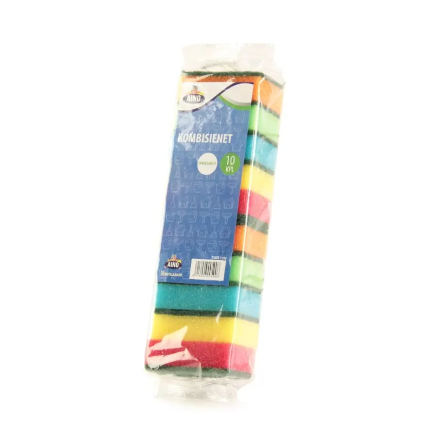 This sponge has two different sides designed to clean various surfaces. The smooth side is great for delicate surfaces such as dishware and the rough side can remove tough messes. The package includes 10 pieces of colourful sponges.