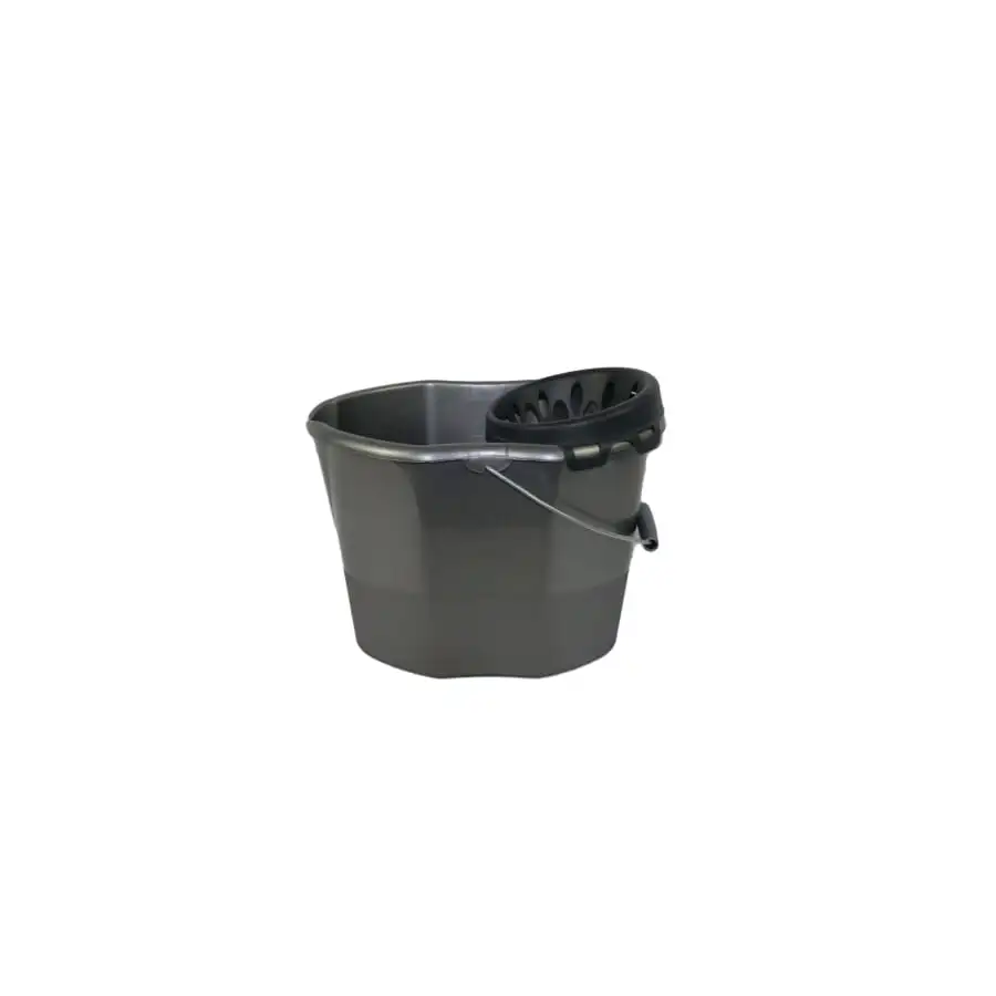 Aino mop and the press make it easy to mop the floors and clean your home. Fill the clean bucket with warm water. Add the detergent to the water and the washing water is ready. Dip the mop in a bucket and dry excess water by squeezing the mop into the dryer. Start mopping the floor and water the mop as the previous instruction if necessary. After cleaning, clean both the mop and the bucket and set them to dry. Pail volume 15 l. The product includes a mopper and a press. Handle metal, other parts of plastic.