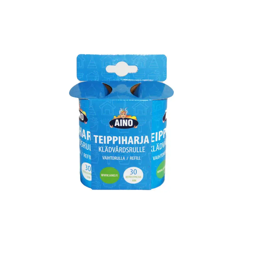 Pakkaus sisältää kaksi vaihtorullaa. Rulla sisältää 30 teippipalaa ja on kokonaispituudeltaan viisi metriä.
