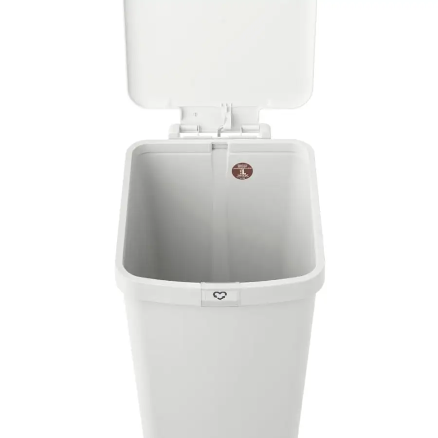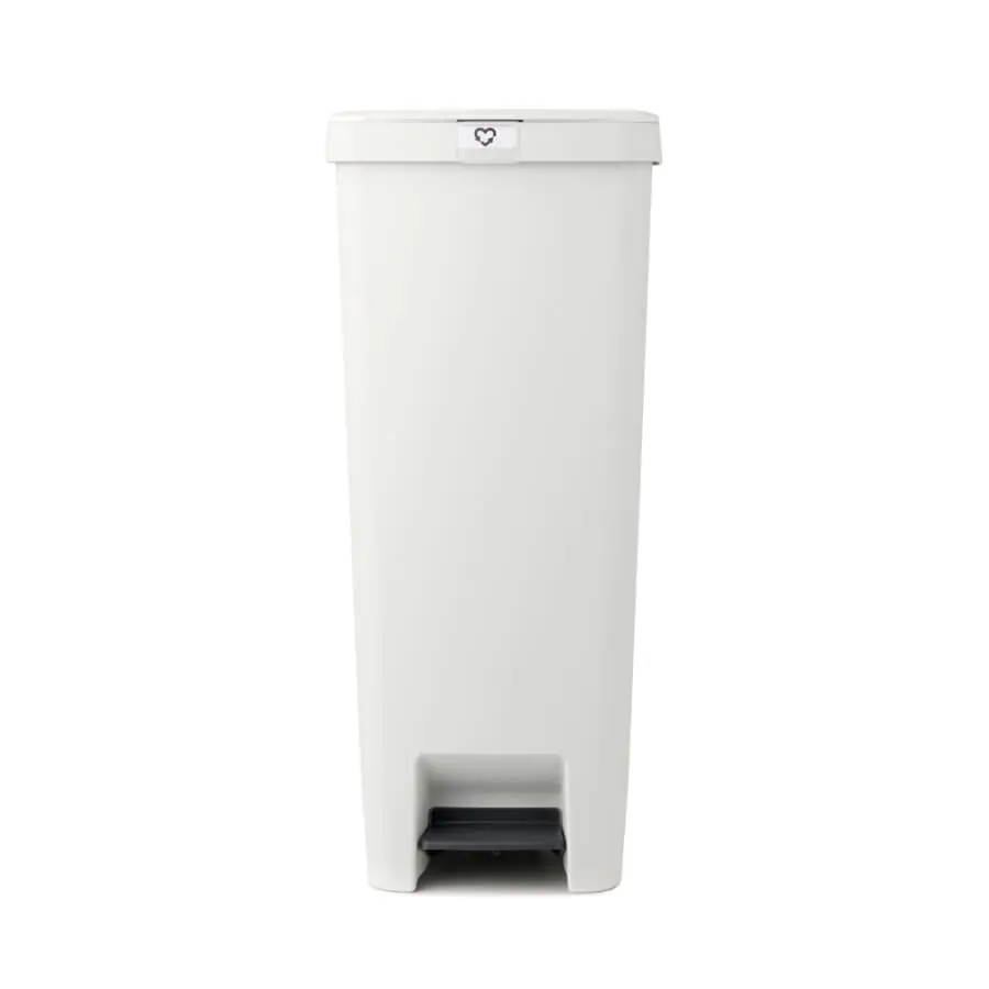 StepUp mahtuu tilaa säästäen kätevästi seinää vasten. Helppo poljinmekanismi avaus, kansi sulkeutuu hiljaisesti ja voit nostaa kannen ylös niin se pysyy auki kun vaihdat roskapussin. Sisällä pohjan lokerossa mahtuu hyvin säilyttämään roskapussirullan.