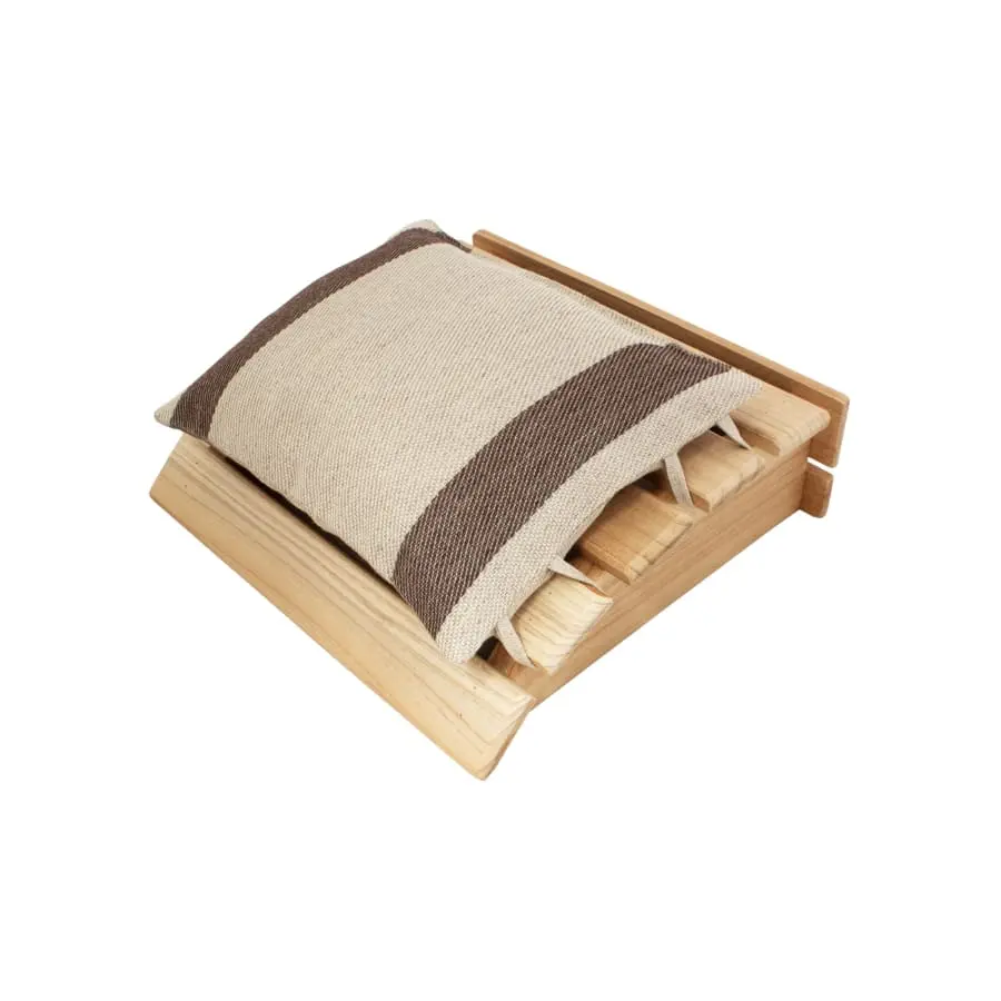 The Emendo head rest with the linen sauna pillow will enhance your sauna experience. Place the set to support your head, neck or back and relax in the warm sauna atmosphere. The fabric in the sauna pillow is a mixture of high-quality linen (60%) and cotton (40%), with a non-flammable filling. The pillow can be machine-washed and dries quickly, even when used frequently.