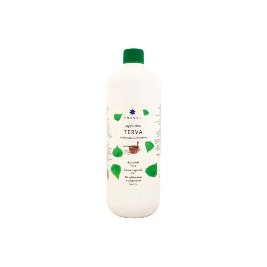 Sauna fragrance Tar in a bottle of 1000 ml. Emendo sauna fragrances add a pleasant scent to the sauna and make the sauna experience even more enjoyable. Contains natural tar. Does not contain synthetic parfumes. Add ½ dl of sauna fragrance to water (3 l), throw over the hot stones of the sauna stove, enjoy the aroma and relax.