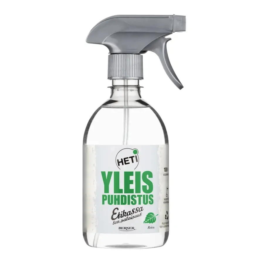 Användbart allmänt rengöringsmedel för alla ytor och fläckborttagning, även från textila ytor. Produkten som innehåller inhemsk spritvinäger rengör effektivt och neutraliserar obehagliga lukter. Produkten behöver inte tvättas bort från ytorna och den fräschar upp hemmet. Inga tillsatta färgämnen och flaskan är återvunnen plast. Tillverkad i Finland och produkten har fått nyckelflagga-ID.