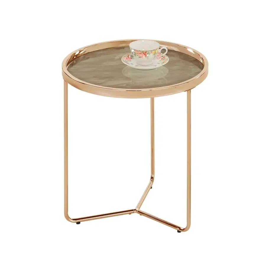 Sidobord ASTOR guld. Ett snyggt och bekvämt sidobord hjälper varje dag och gör det också lättare att underhålla gästerna hemma. Bordsskivan är gjord av 5 mm tjockt härdat glas med ett lyxigt marmormönster. Bordets stålben är utförda i en elegant gyllene ton. Måtten på sidobordet är 45 x 49 cm.