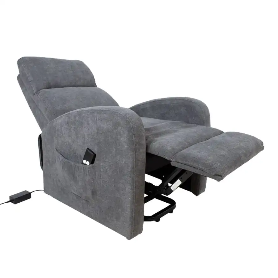 En bra presentidé till morföräldrar! Mekanism stol Barny, positionen på ryggstödet och fotstödet kan ändras med en fjärrstyrd elektrisk mekanism. När fotstödet höjs förflyttas ryggstödet mjukt till viloläget. Fåtöljen är utrustad med en lyftmekanism som trycker upp hela stolen från sin bas och hjälper användaren att komma i stående eller sittande läge utan att belasta höfter, rygg eller armar. Klädd med polyuretanskum och 100% polyestertyg. Ram och upphängning av trä, plywood och metall.