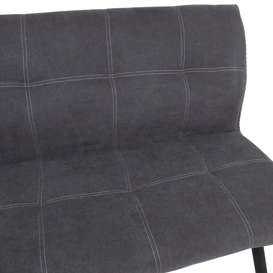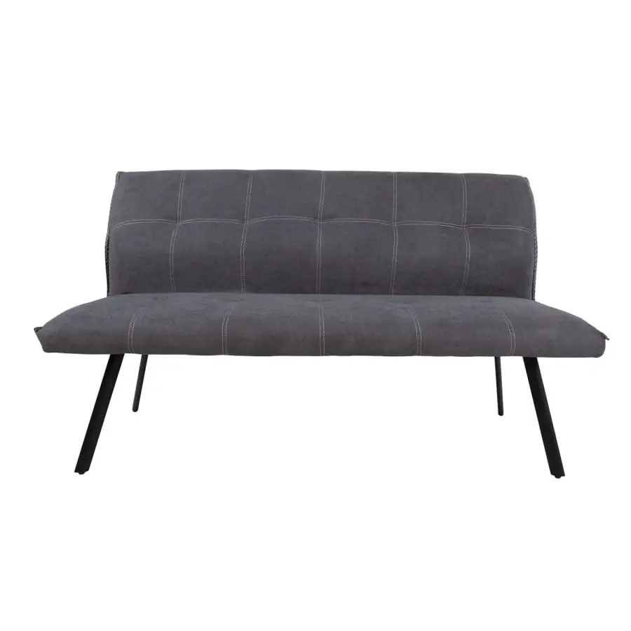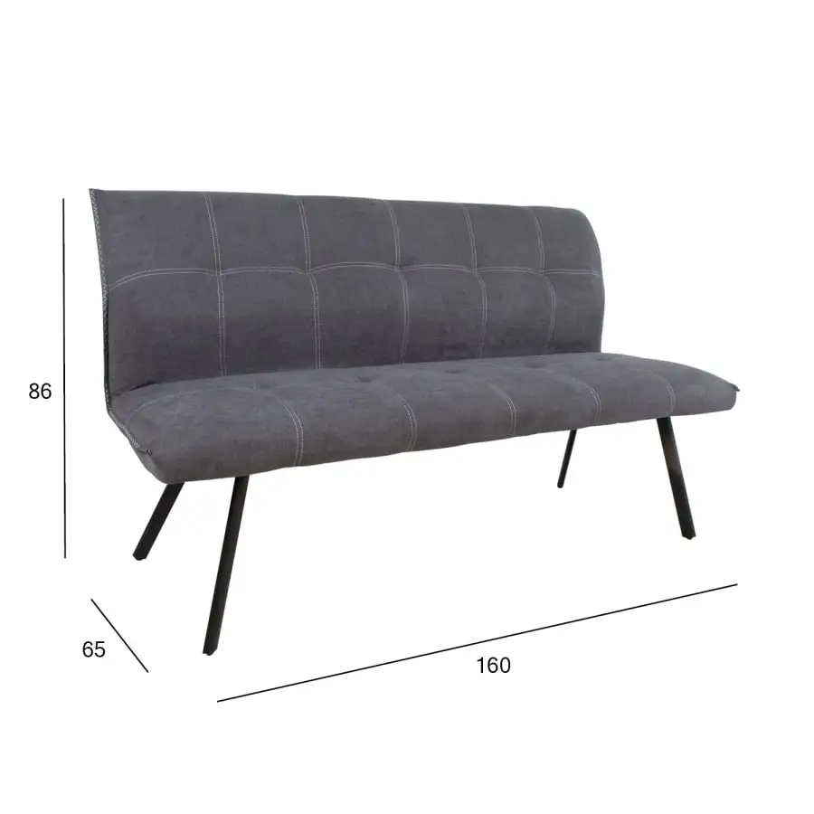 Sofa EDDY gray. The stylish sofa is covered with gray polyester fabric. The sofa seat is upholstered. The edges are gray fabric. The black metal legs of the sofa are powder-coated. The dimensions of the sofa are 160 x 65 x 86 cm.