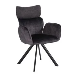Stol EDDY med armstöd 63x55xH89cm sammet. Den bekväma och snygga matstolen är klädd med polyestertyg. Stolen har armstöd och sitsen är klädd. Tyget på den övre delen av ryggstödet är en något annorlunda nyans. De svarta matta metallbenen är pulverlackerade. Sitthöjd 48cm, sittbredd 45cm, sittdjup 42cm. Rygghöjd 47 cm. Armstödshöjd från marken 64cm. Viktgräns 120 kg.