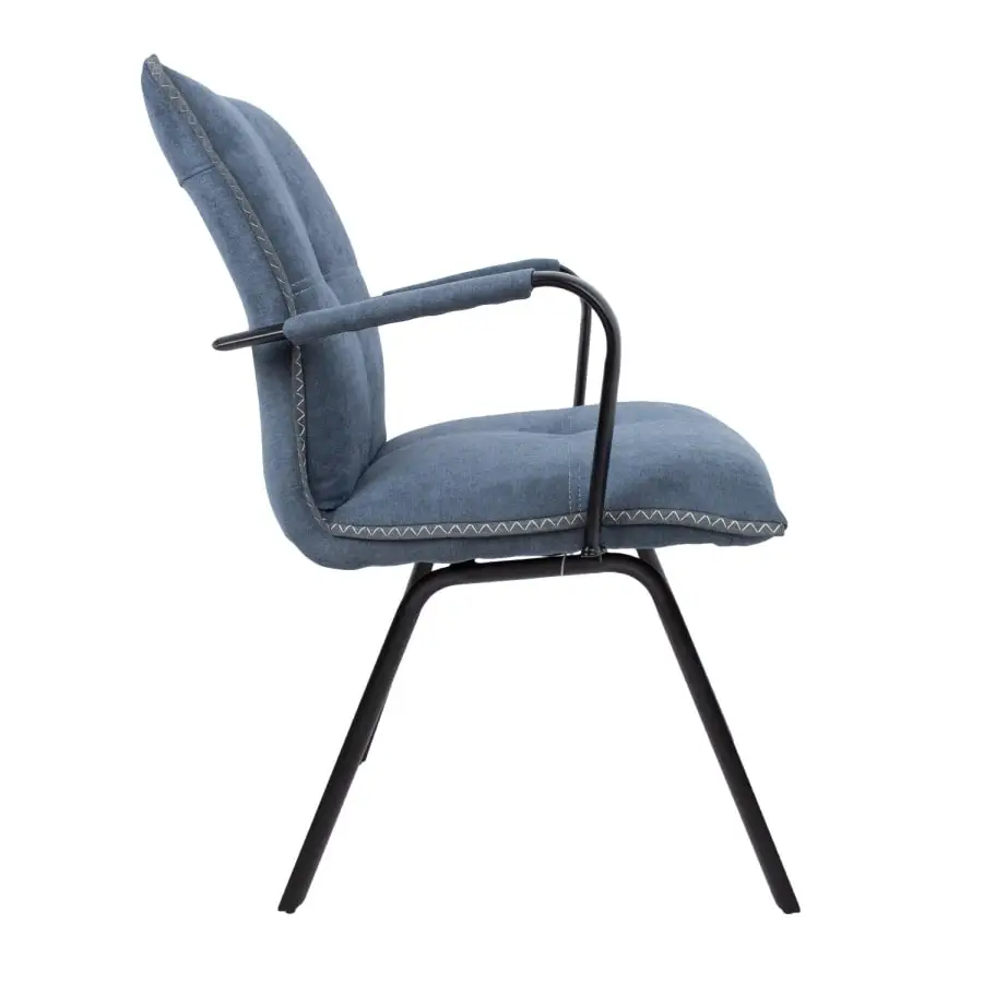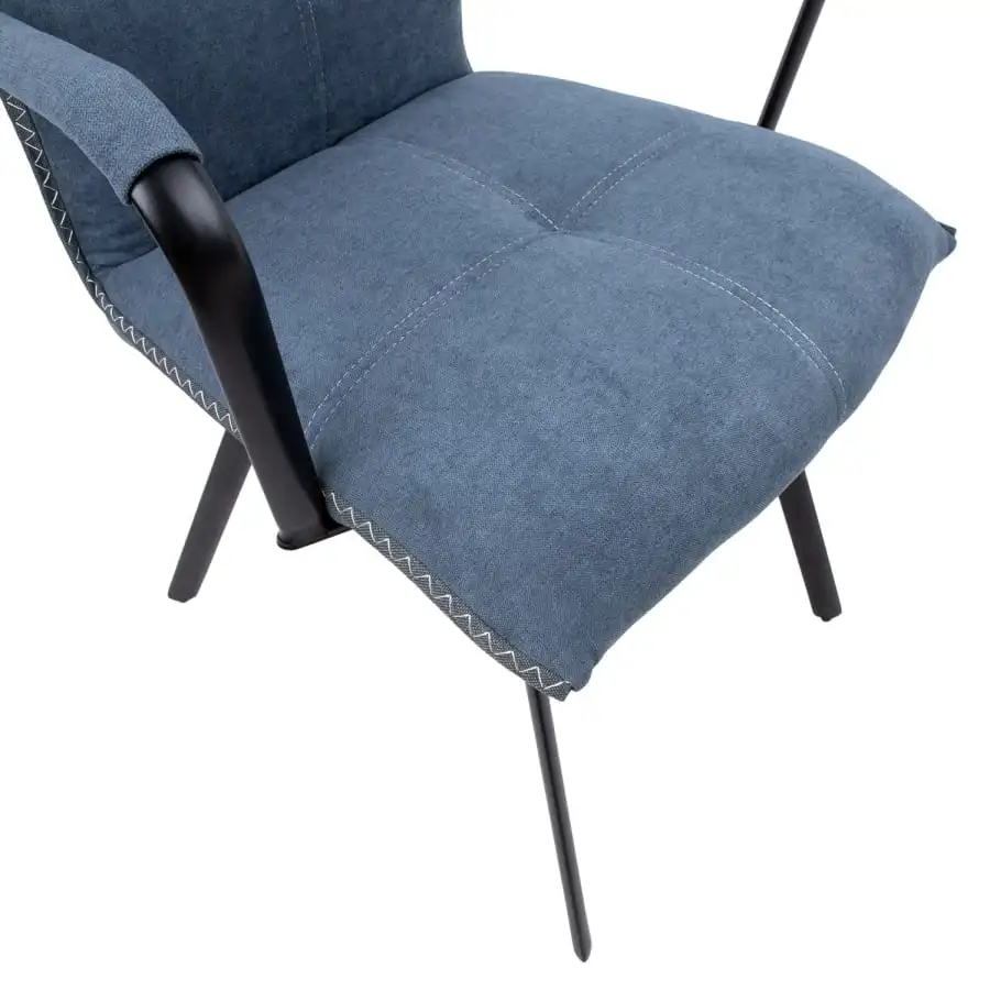 Chair EDDY with armrests 59x56xH89cm. The convenient and stylish dining chair is covered with polyester fabric. The chair has armrests and its seat is upholstered. The black metal legs are powder coated. Seat height 48cm, seat width 47cm, seat depth 45cm. Backrest height 47cm. Armrest height from the ground 68cm. Weight limit 120kg.