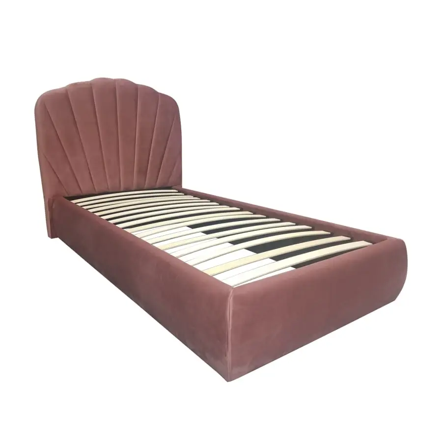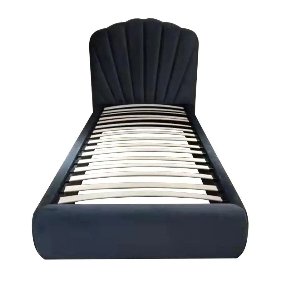 Upholstered bed frame EVA 90x200cm velvet. The main structure of the bed is solid pine and plywood. The frame and end are upholstered and covered with velvet fabric. The covering material is 100% polyester, 260g/m², Martindale 25,000. The slatted base is included in the set. The mattress is not included in the set. The dimensions of a suitable mattress are 90x200cm. The total dimensions of the bed are 115x220xH120cm.