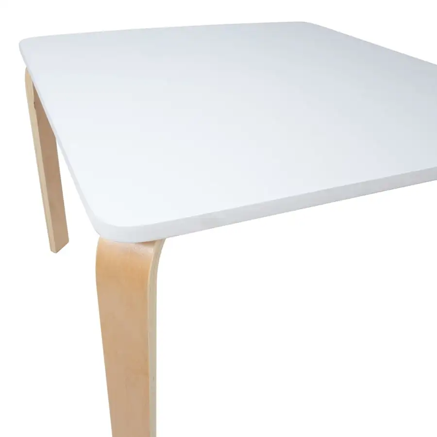 Children’s table HAPPY 75x75xH50cm, white. Material: poplar plywood and birch veneer. The table top is painted white. The bent plywood legs are finished with natural varnish.