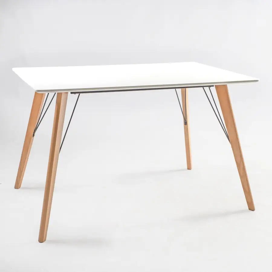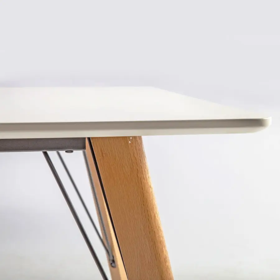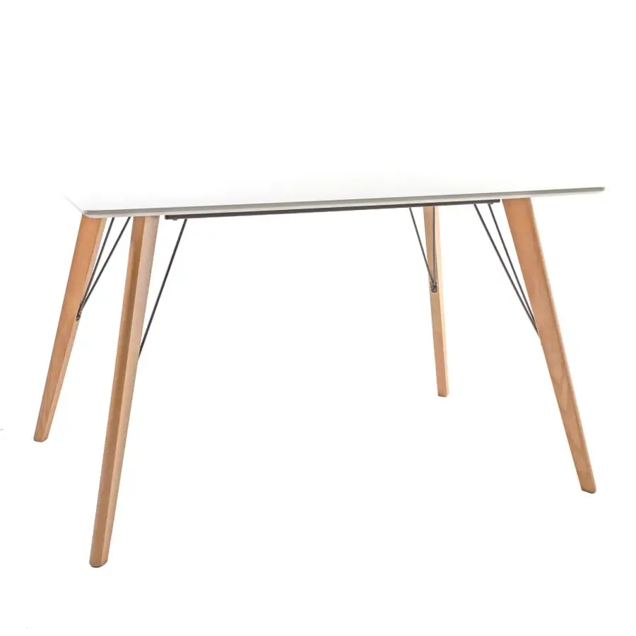 Stylish light dining table Helena. The table top is made of MDF and the legs are solid oak.