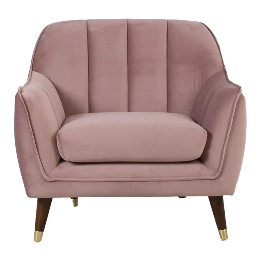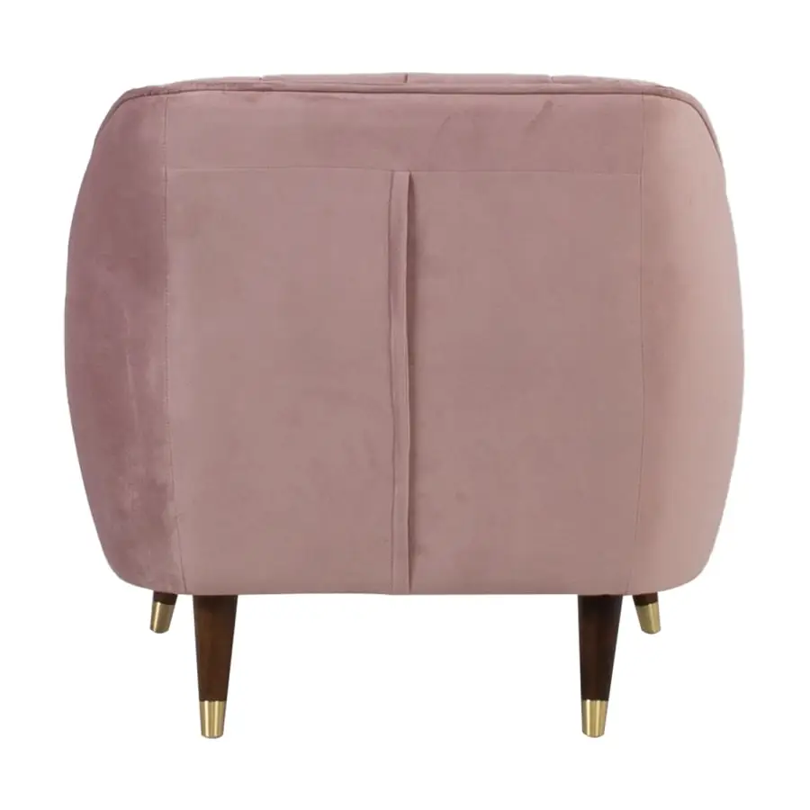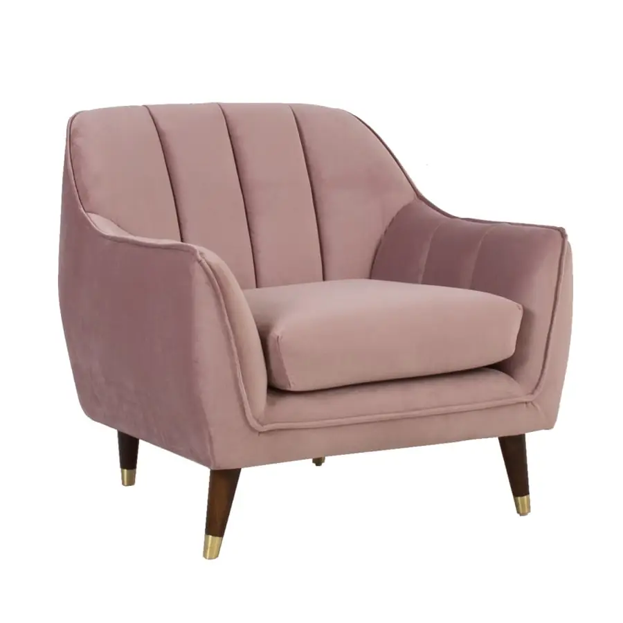 Den underbart mjuka Joanna-fåtöljen inbjuder till vila! Sittkomforten förbättras av den vackra sammetsklädseln som ger uttryck åt din interiör. Träram och sicksackupphängning. Vadderingen är polyuretanskum 30 kg/m³ och yttertyget är 100% sammetslen polyester, Martindale 40 000. Mörka träben med gyllene ändar.
