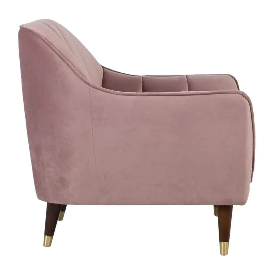 The wonderfully plush Joanna armchair invites you to rest! The sitting comfort is improved by the beautiful velvet upholstery, which brings expression to your interior. Wooden frame and zigzag suspension. The padding is polyurethane foam 30 kg/m³ and the outer fabric is 100% velvety polyester, Martindale 40,000. Dark wooden legs with golden ends.