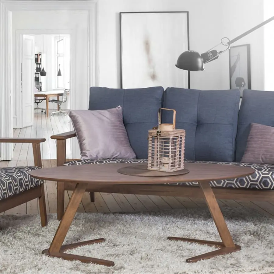 Beautifully designed coffee table Lana. The frame is made of rubber wood and finished with glossy varnish. The table top is made of oak veneered MDF board.