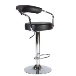 Bar stool Leo with synthetic leather seat. Body in chromed steel. The height of the seat can be adjusted with a gas spring.