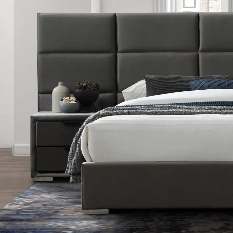 Levanter bed with beautiful gray velvet upholstery. The mattress is not included in the package. The frame of the bed is made of MDF board and the upholstery is made of velvety polyester fabric. Chromed metal legs. The end is included.
