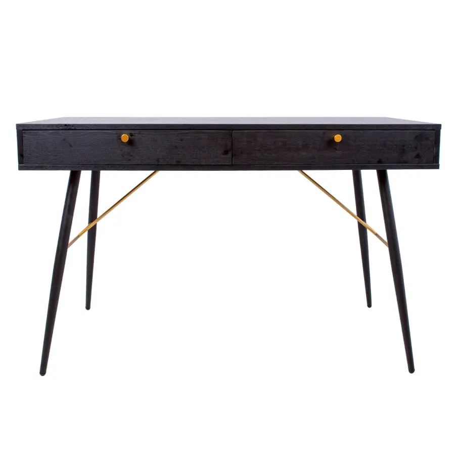 A desk is a necessary addition to every home, allowing you to use the computer more conveniently or create a practical home office space. The desk is made of melamine and the base is made of metal. The table has soft-closing drawers and copper-colored aluminum handles.