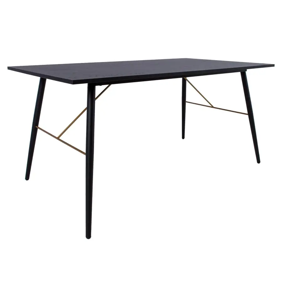 Stylish Luxembourg dining table. Tabletop black melamine board. Copper colored metal frame.