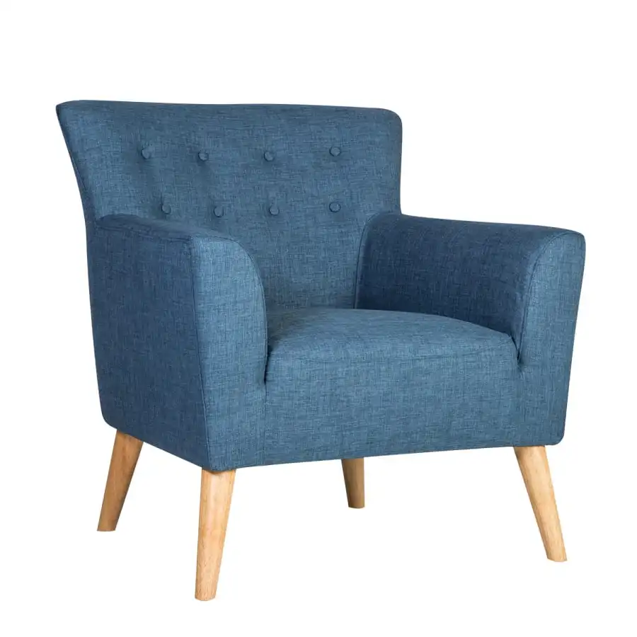 Stylish armchair Movie with a beautiful design. Frame made of solid wood and plywood. Zig-zag and Bonnell suspension. Padding polyurethane foam 24-28kg/m³ and upholstered with 100% polyester. Wooden legs.