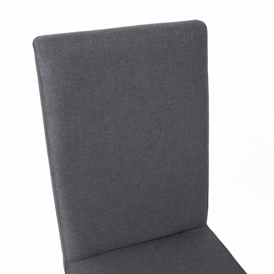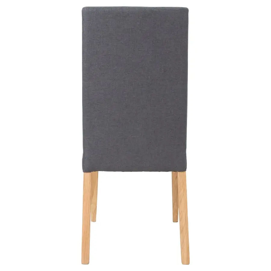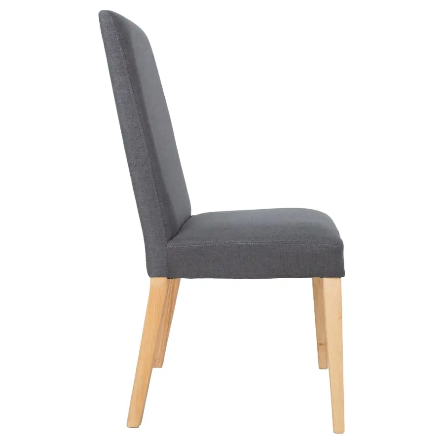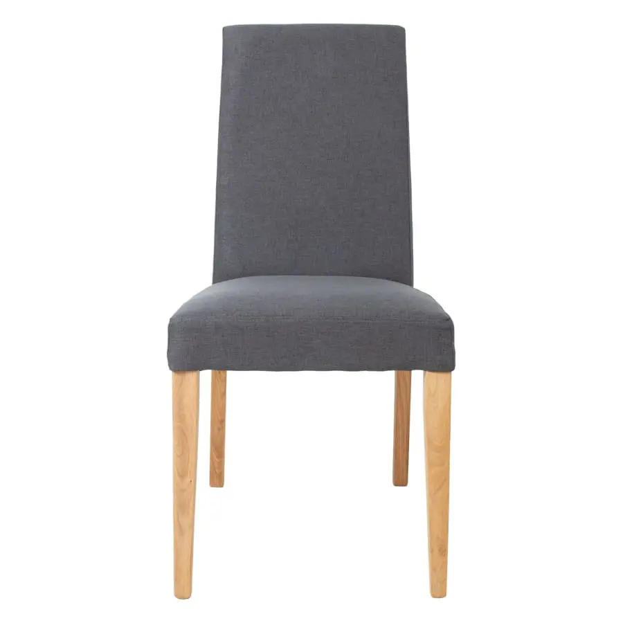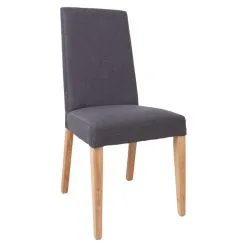 Dining chair Pau. The chair is upholstered with dark gray polyester fabric. Higher backrest. The legs are light oak.