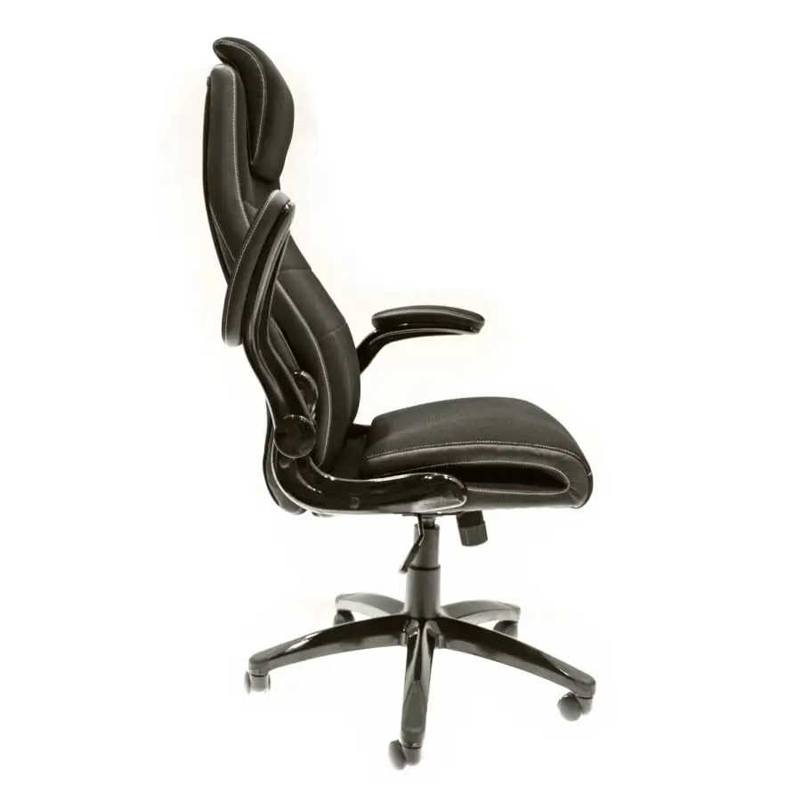 Justerbar kontorsstol Pistoia. Synkronmekanism, ryggstödets kurvatur justerbar, sitshöjd justerbar med gasfjäder. Armstöd av plast och stoppade med syntetläder, justerbara. Höjden på nackstödet är justerbart. Sits och ryggstöd i konstläder och polyesterväv. Bengaller av plast.