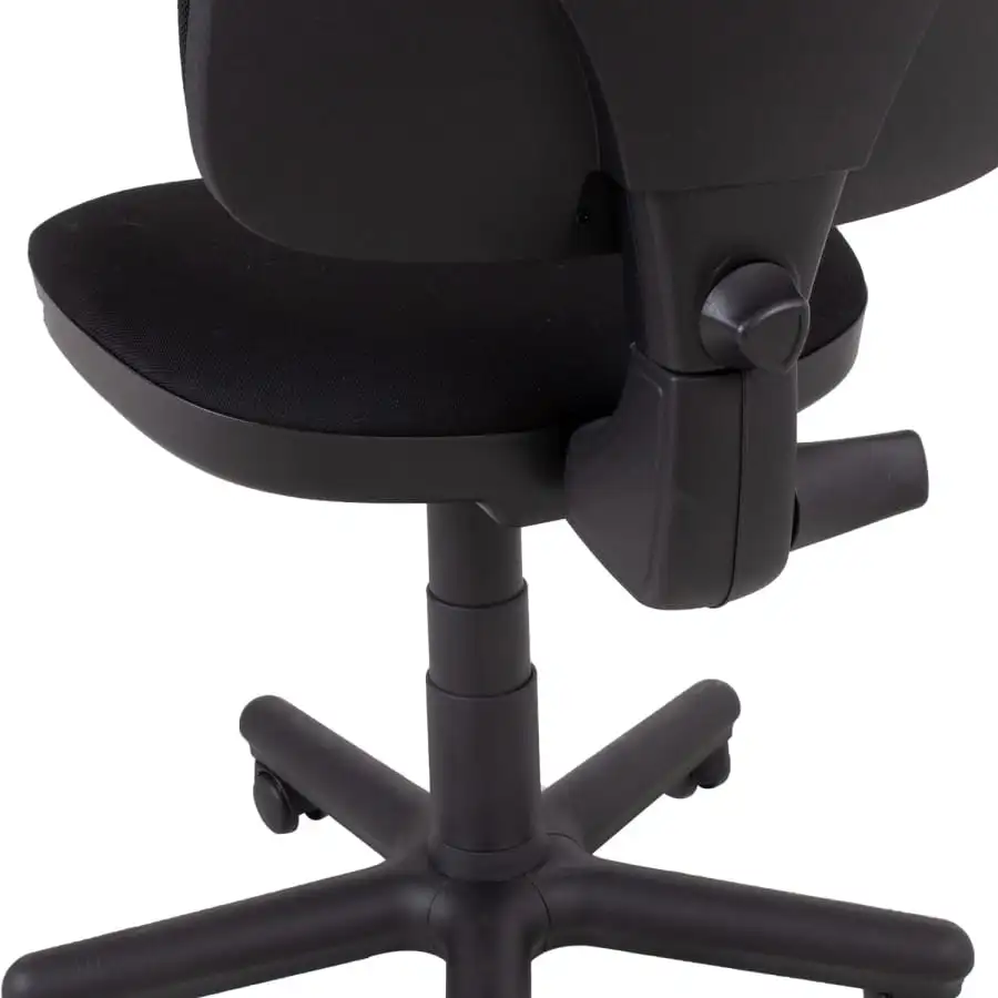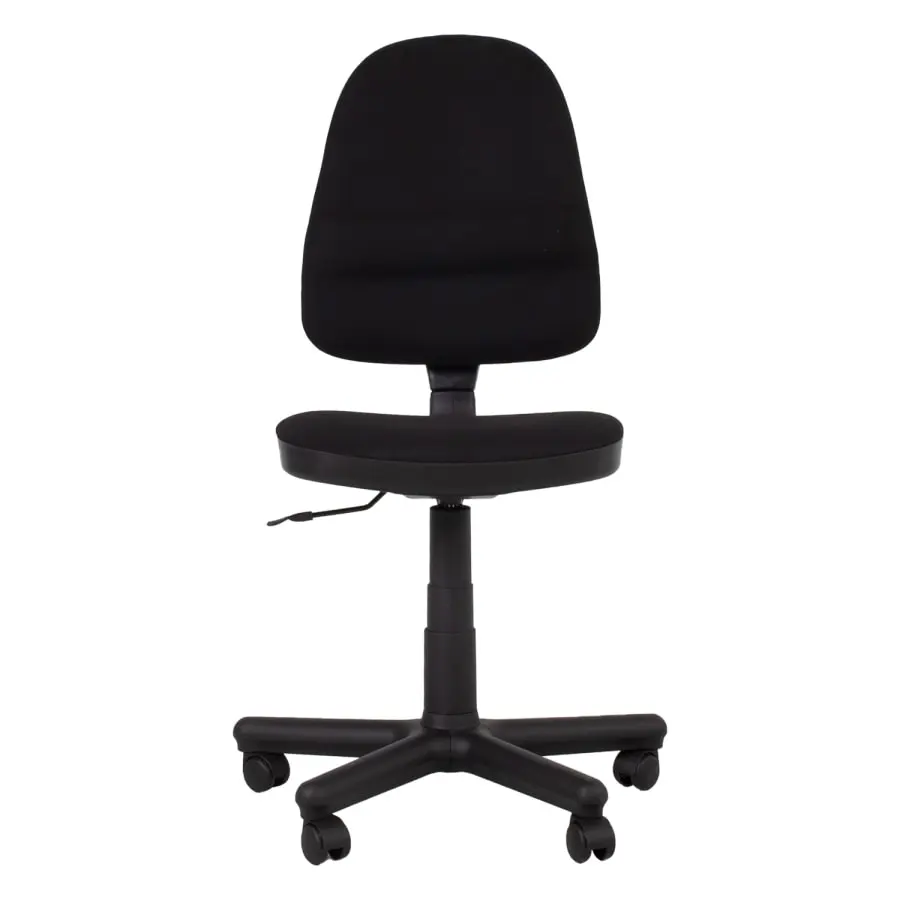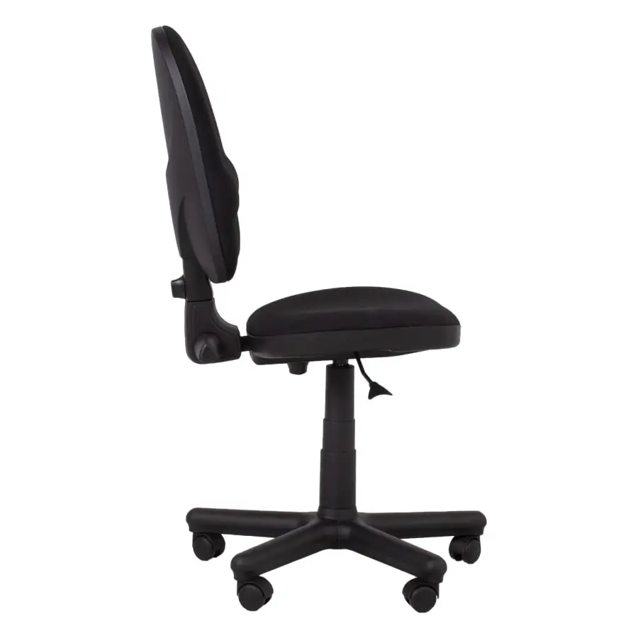 Office chair Prestige with durable polyester fabric. Backrest height, distance and inclination adjustable, seat height adjustable with gas spring. Leg grid made of plastic. Seat and back in polyester fabric, 30,000 Martindale. Plastic wheels with wheels.