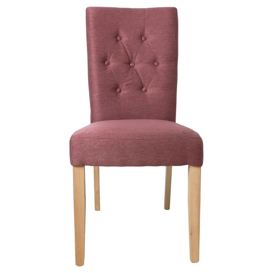 Dining chair Queen, with luxurious back design. Available in several different colors. The legs of the chair are made of oak and the seat is upholstered with polyester fabric. Seat and backrest padded.