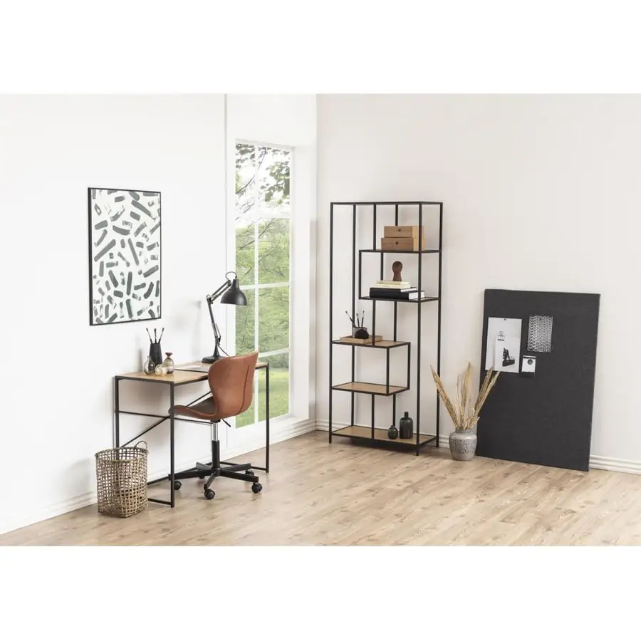 Skrivbord SEAFORD 100x45xH75cm, material: laminerad möbelskiva, färg: ek, ben: svart metall.