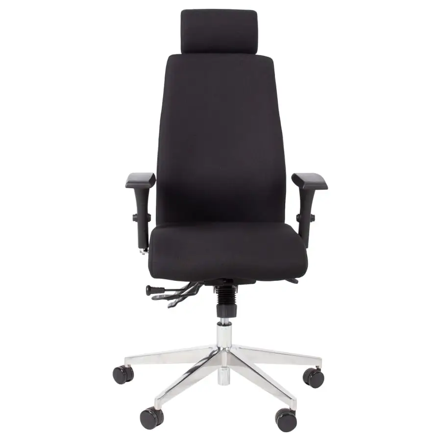 Kontorsstolen Smart Extra har en särskilt slitstark klädsel och många justeringsmöjligheter. Sits och ryggstöd klädda i slitstarkt polyestertyg, 130 000 Martindale. Multifunktionell mekanism, sitsdjup och ryggstödshöjd justerbar. Sitsens höjd kan justeras med en gasfjäder och lutningen på sitsen kan justeras. Armstöden är gjorda av polyuretan och deras höjd är justerbar. Nackstödets höjd och lutning är justerbara. Bengaller: polerat aluminiumgaller. Hjul: gummihjul D60mm, stift 11mm.