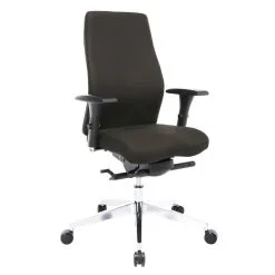 Tuotuoli Smart Plus, with several adjustment possibilities. Synchronous mechanism, lockable in five positions, the stiffness of the swing can be adjusted based on the weight of the sitter. Seat depth, backrest height adjustable, seat height adjustable with gas spring and negative seat inclination. Seat and backrest upholstered in durable polyester fabric, 30,000 Martindale. Armrests made of plastic and padded with polyurethane, height, depth and lateral direction adjustable. Leg grid: polished aluminum grid. Wheels: rubber wheels D60mm, pin 11mm.