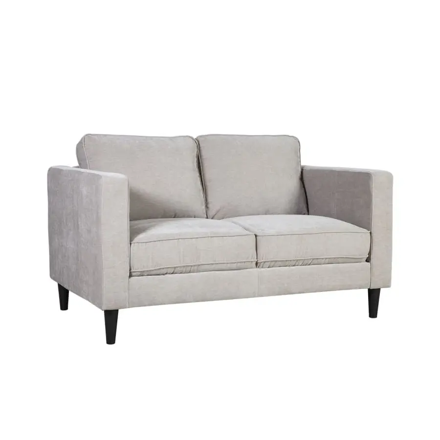 The 2-seater Spencer sofa is wonderfully soft to sit on! Frame made of wood and plywood. Zig-zag and pocket suspension. Padding polyurethane foam 28kg/m³, dacron and upholstery velvety soft polyester fabric. Dark colored plastic legs.