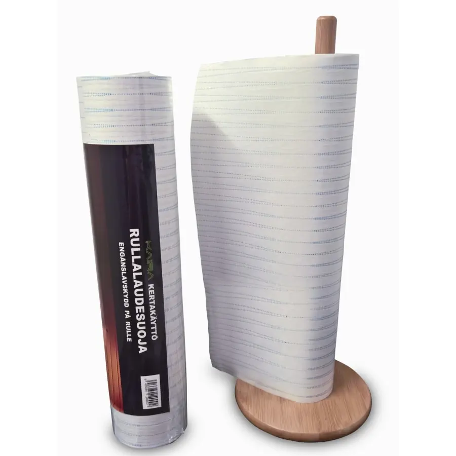 A wooden floor stand where the Kaira sauna seat cover roll conveniently stays upright. Tar alder, made in Finland. Also works well as a toilet paper and kitchen paper holder. The delivery does not include sauna seat cover roll.