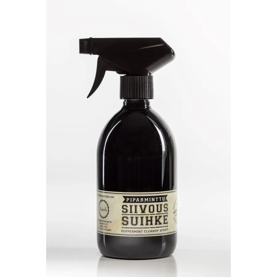 Ecological cleaning spray with peppermint essential oil on water washable surfaces of home. Vegan