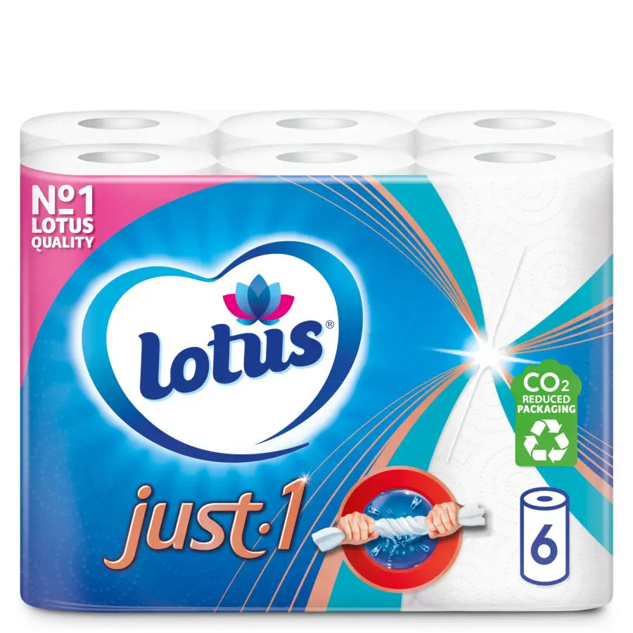 Lotus Just1 ekonomiskt papper är ett mycket starkt, hållbart och absorberande ekonomiskt papper. Den kan blötas, den kan skrynklas och den tål nötning. Så absorberande att även ett ark kan räcka. Lämplig för användning under matlagningslov samt för rengöring av ytor i hemmet. Tillverkad av ansvarsfulla fibrer (FSC-certifikat). Plasten som används i förpackningen är till minst 50 % återvunnen plast, vilket gör att förpackningens koldioxidavtryck är mindre. Omslaget kan även återvinnas.