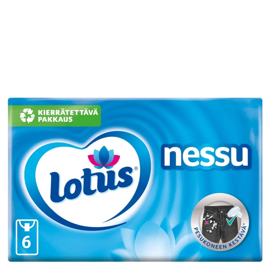 Lotus Nessu handkerchiefs are easy to carry around in everyday life and at parties. The tissues in the Lotus Nessu pocket pack are reliable Nessu tissues in a convenient pocket pack. The handkerchiefs are machine-washable. The product contains 6 pocket packs. Made from FSC-certified fiber (fiber raw material: cellulose).
