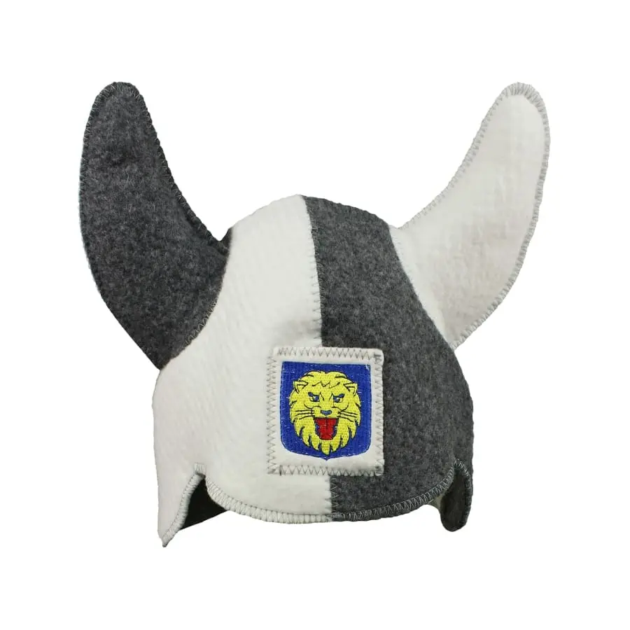 Felted from a wool blend (59% wool, 50% geotextile), the viking helmet-style sauna/bald hat protects the head, ears and neck well from the heat of the sauna. Also, colored hair stays good for longer when it is protected in steam baths. Correspondingly, you can sit in the sun for longer when you protect your head from the cool outside air.