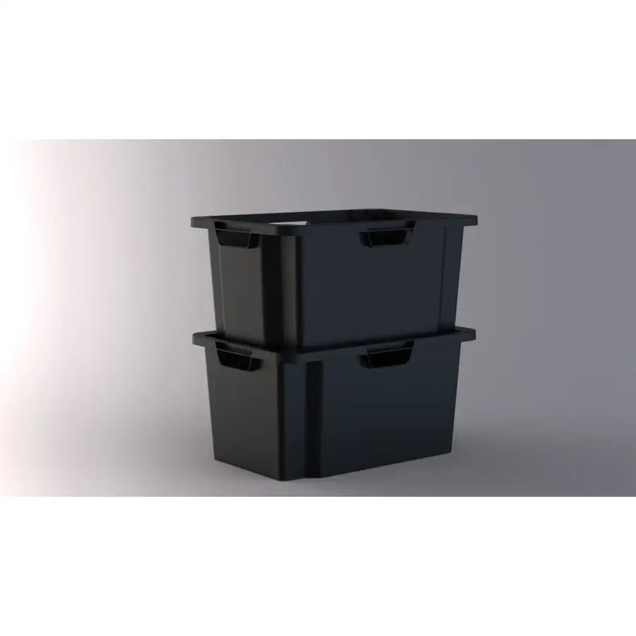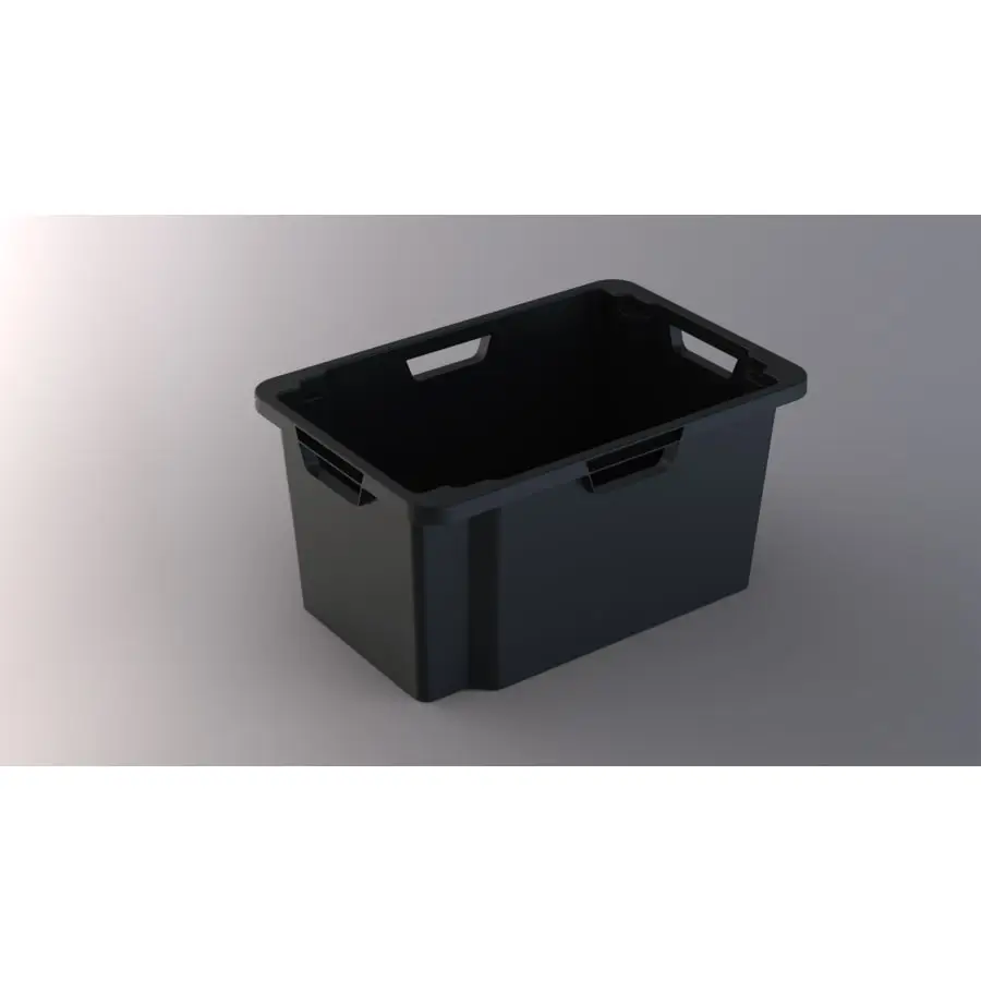 Very durable Mano storage / moving box with a volume of 50 liters. The boxes can be stacked both inside and on top of each other. Carrying handles on all sides. The dimensions of the box are 591x396x295 mm. Made from recycled plastic.