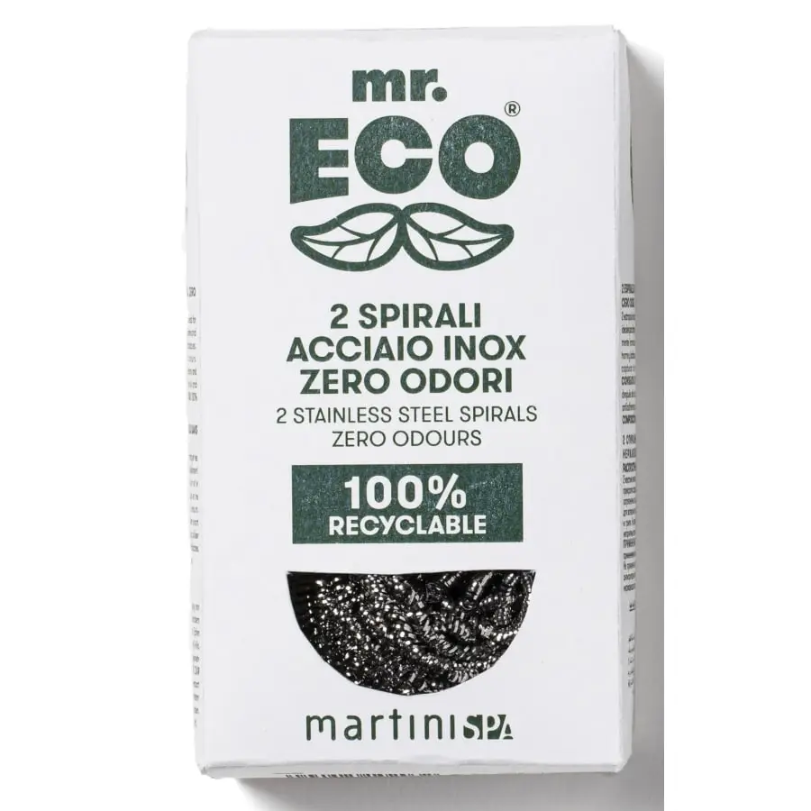 MrEco Scouring pads in stainless steel. ideal for cleaning particularly encrusted dishes and oven pans, pots, oven grills and barbecues. They do not rust or retain odours.
