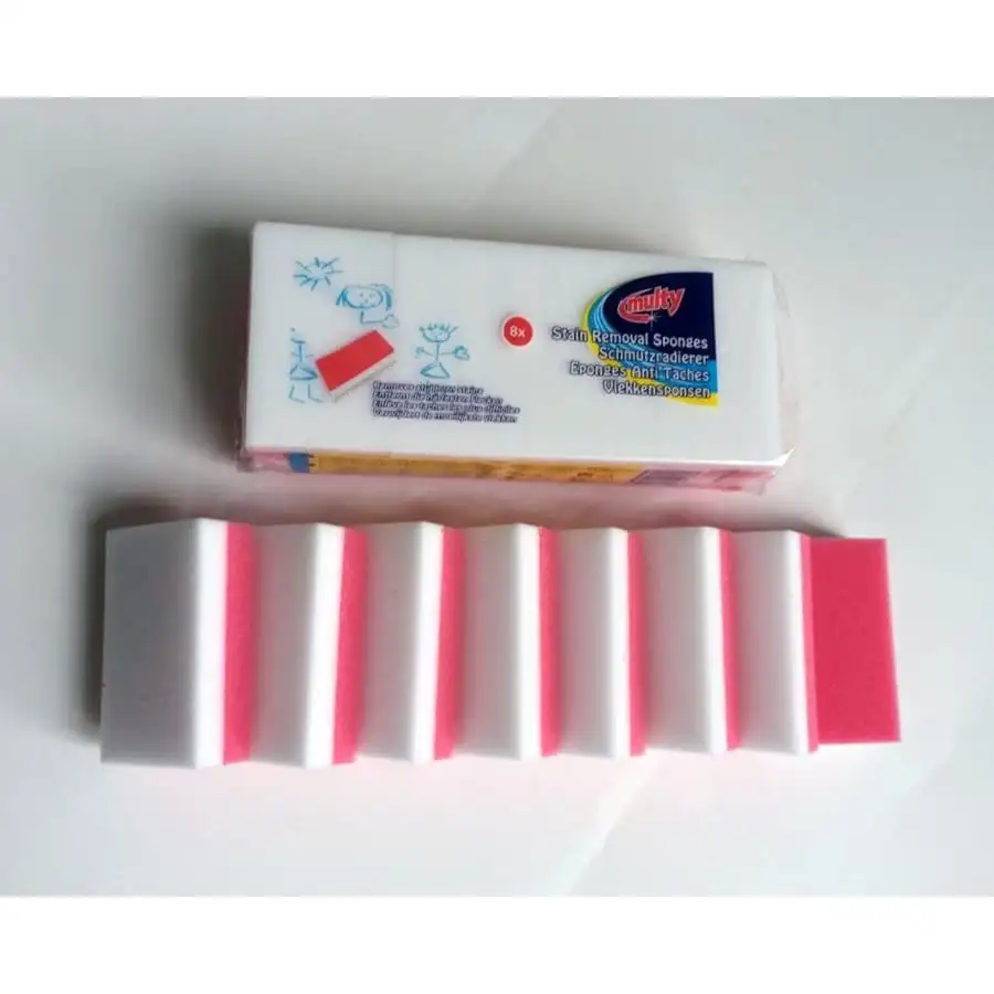 - The package contains 8 cleaning sponges with a slightly abrasive white side.
