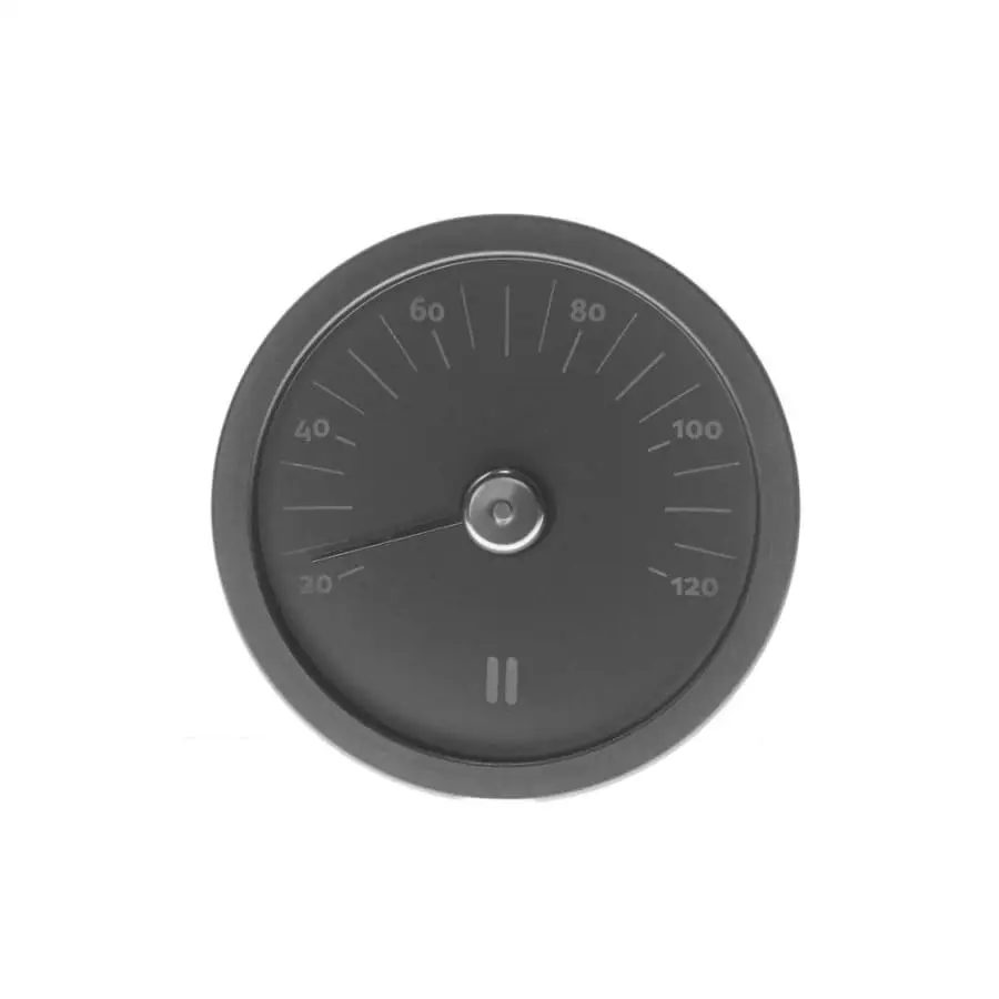 A sauna thermometer is a small but important piece of equipment to ensure a pleasant sauna experience. The stylish design sauna thermometer complements the range of black aluminium products. Temperature is shown in Celsius.