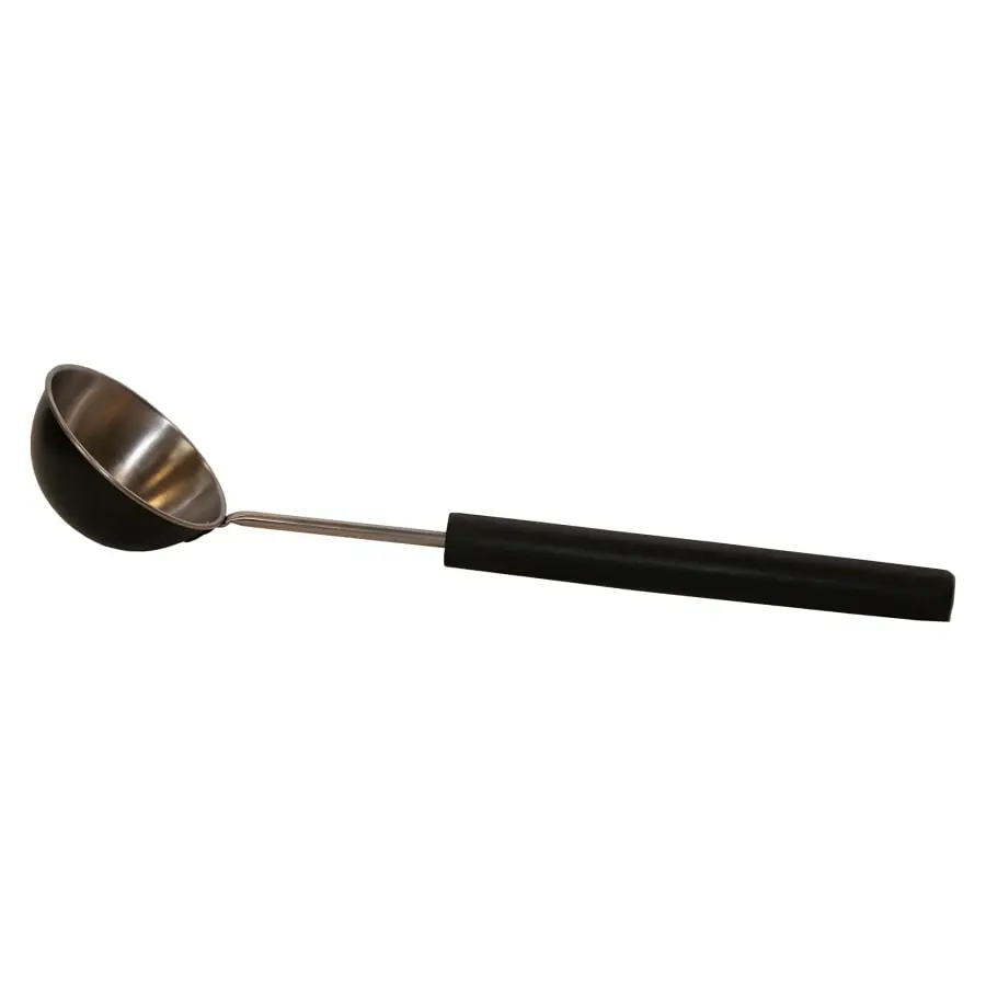 Saunaladle made of stainless steel. With black color wood handle