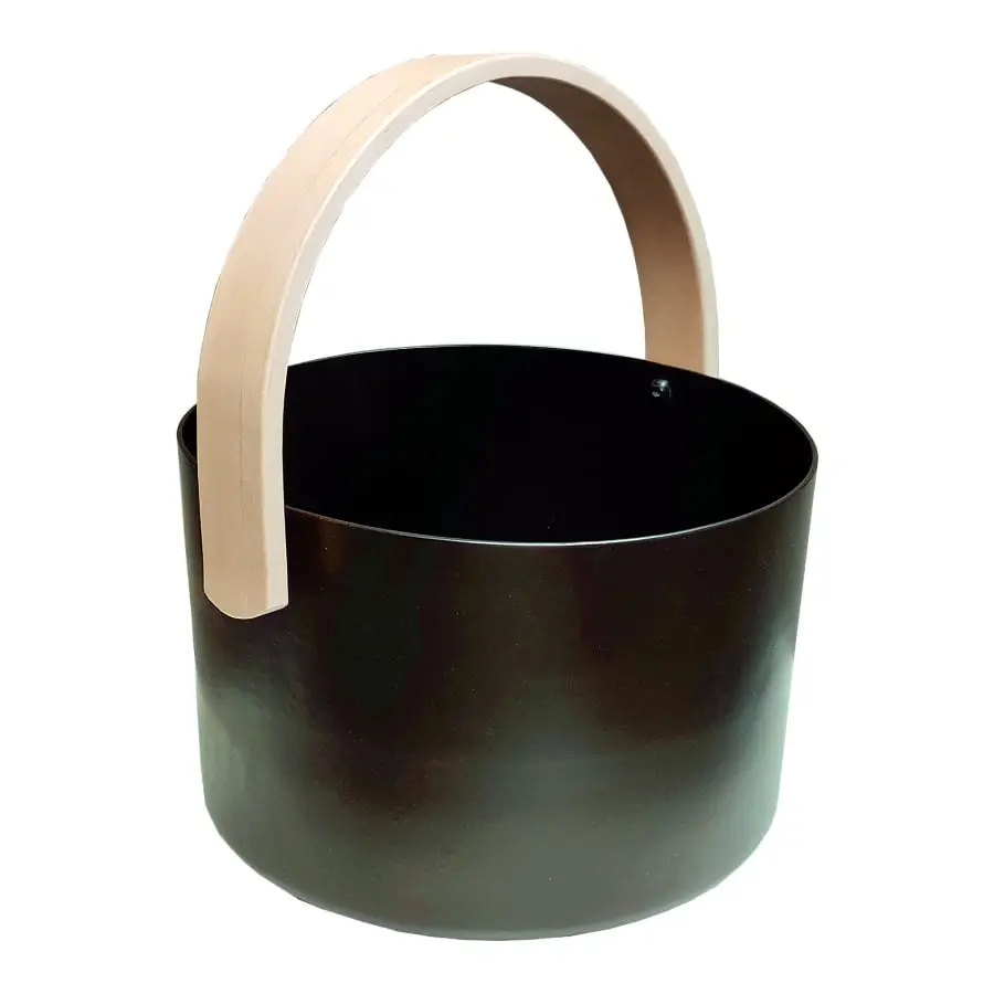Sauna pail 6 litres made of aluminium. Mocha color with beech wood handle