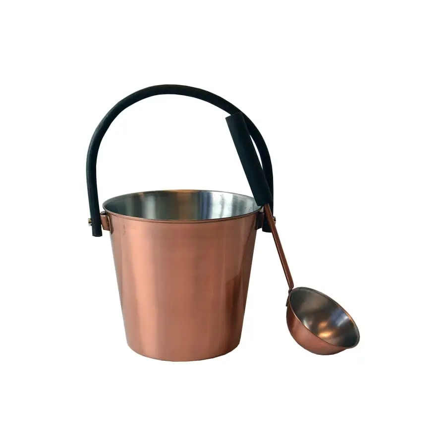 Sauna pail and saunaladle set. Made of stainless steel. Outer surface is copper plated