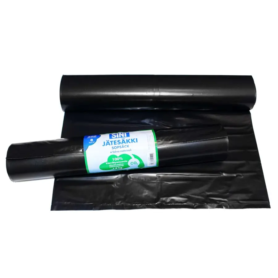 En stark och rejäl soppåse för många behov. SINI soppåsen är gjord av starkt material. Styrkan på sopsäcken är 60 my eller 0,06 mm. Vikten på soppåsen är 200 liter och det finns 8 påsar i rullen. Säcken är gjord av 100% återvunnen plast.