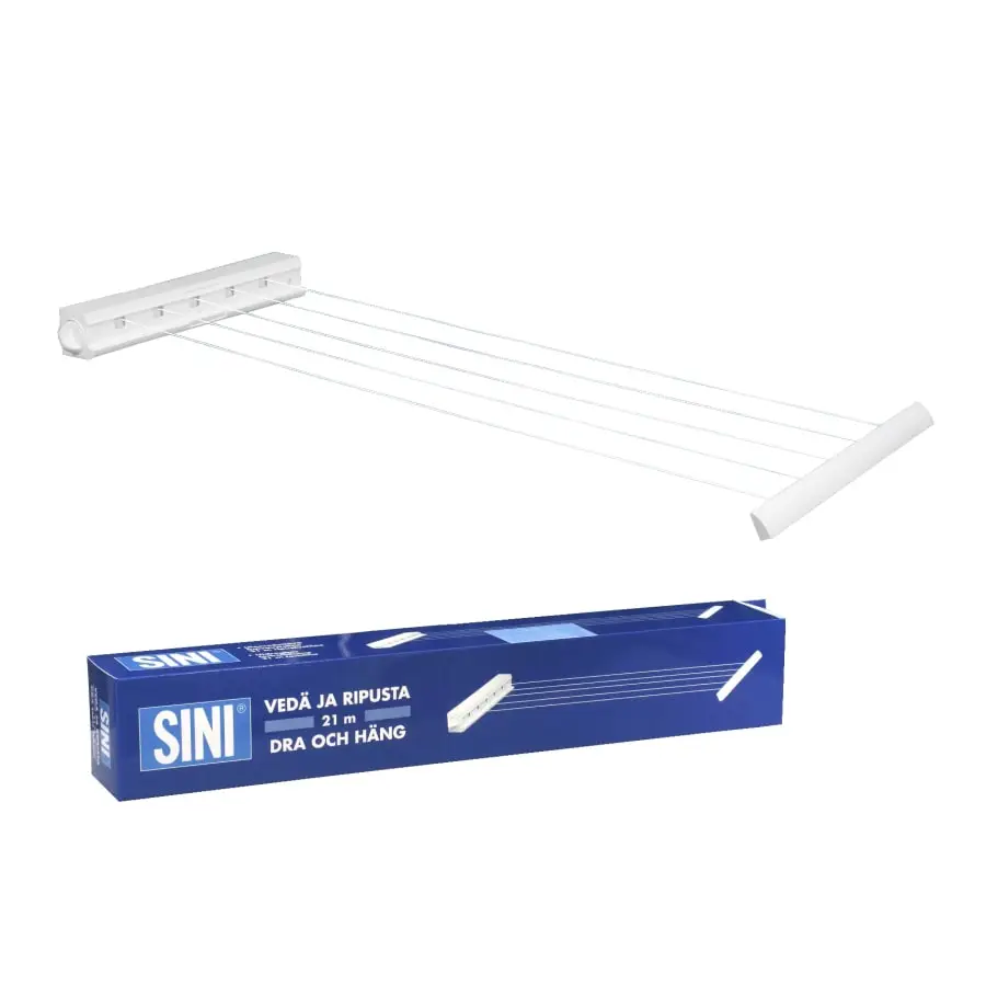 The pull-and-hang drying rack has five pull-out cords and a total of 21 meters of drying space.