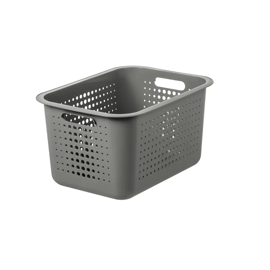 SmartStore Basket Recycled är tillverkad av återvunnen plast. Den lätta och slitstarka korgen passar för både torra och fuktiga utrymmen i hemmet.