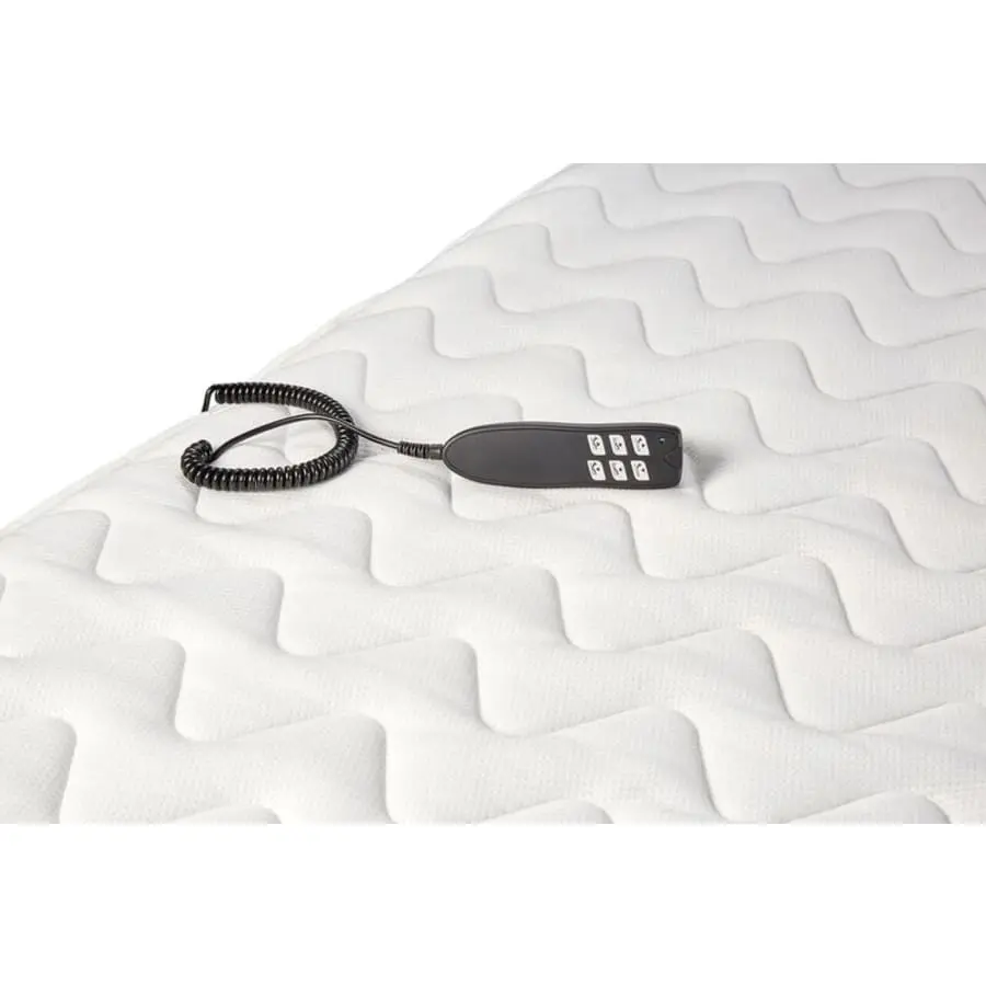 Stylish motor bed with a strong wooden frame and durable Malmo upholstery fabric. The tall white wooden leg makes vacuuming under the bed easier. The remote control has three different settings, you can adjust the bed to exactly the position you want. The bed has pocket springs in the mattress part with 278 springs/m2. The package includes legs, a remote control and a viscoelastic mattress topper.