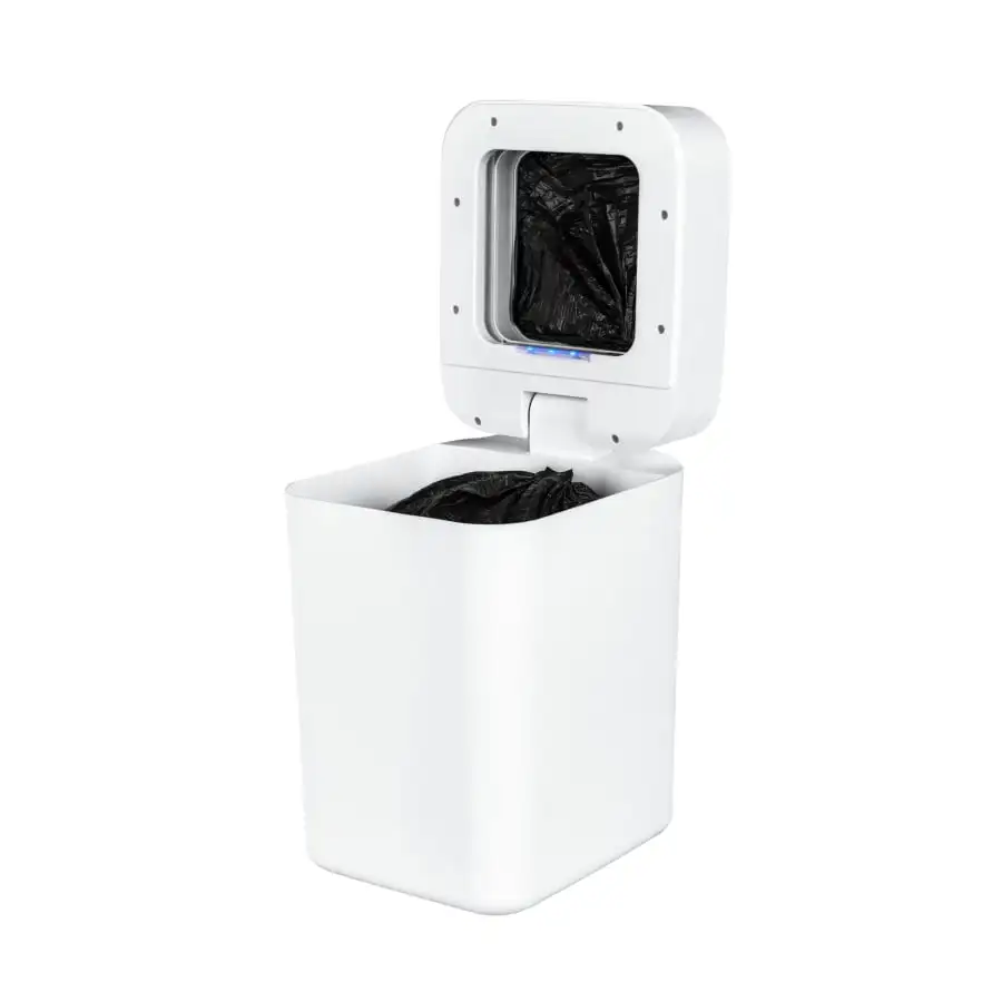 Townew T1C is a trash can that automatically opens and closes the lid using a sensor and seals and changes the trash bag for you. It detects when the trash can is full, and the trash bag automatically seals. Automatic technology is designed to keep your hands clean. The trash can comes with one filling ring that contains 25 trash bags. The trash can has a rechargeable battery that can be charged with the included power adapter.