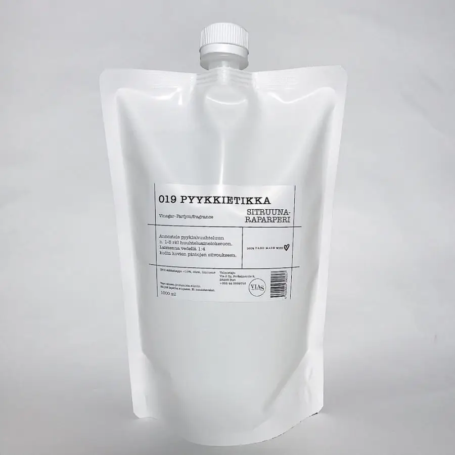 För att använda som sköljmedel, tillsätt 1-3 rl tvättvinäger i sköljmedelsfacket. Fräschar upp och mjukar upp tvätten. Passar alla kläder och fräschar upp även särskilt starka dofter, t.ex. från tekniska sportkläder, permanenta blöjor etc. Lyser upp färger. Utspädd 1:4 lämpar den sig för rengöring av hela hemmet, speciellt för tvätt av fönster och för kalkavlagringar i toalett och badrum. Det rekommenderas dock inte för marmor. Inhemsk produkt, gjord av inhemsk, naturlig 100% spritvinäger. Tätningsmedel, inget tillsatt vatten.